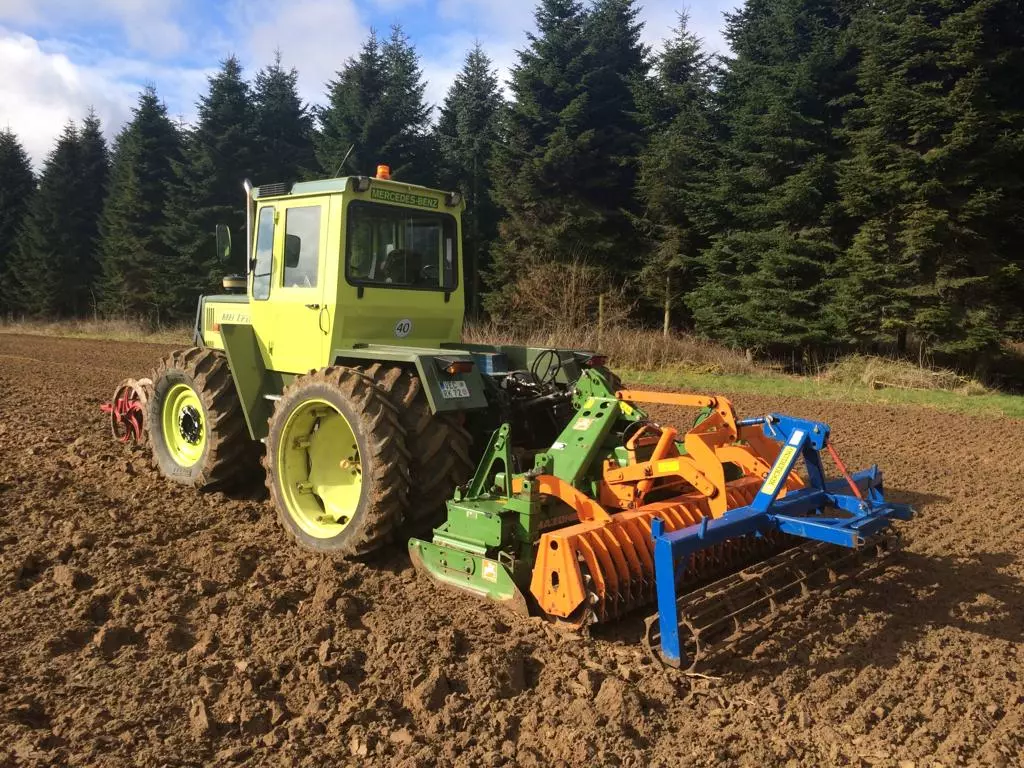 Wir führen Rüben- und Rapsaussaat mit einem mechanischen Einzelkorn-Sägerät mit 18 Reihen auf 45 cm durch (8,10 m Arbeitsbreite).