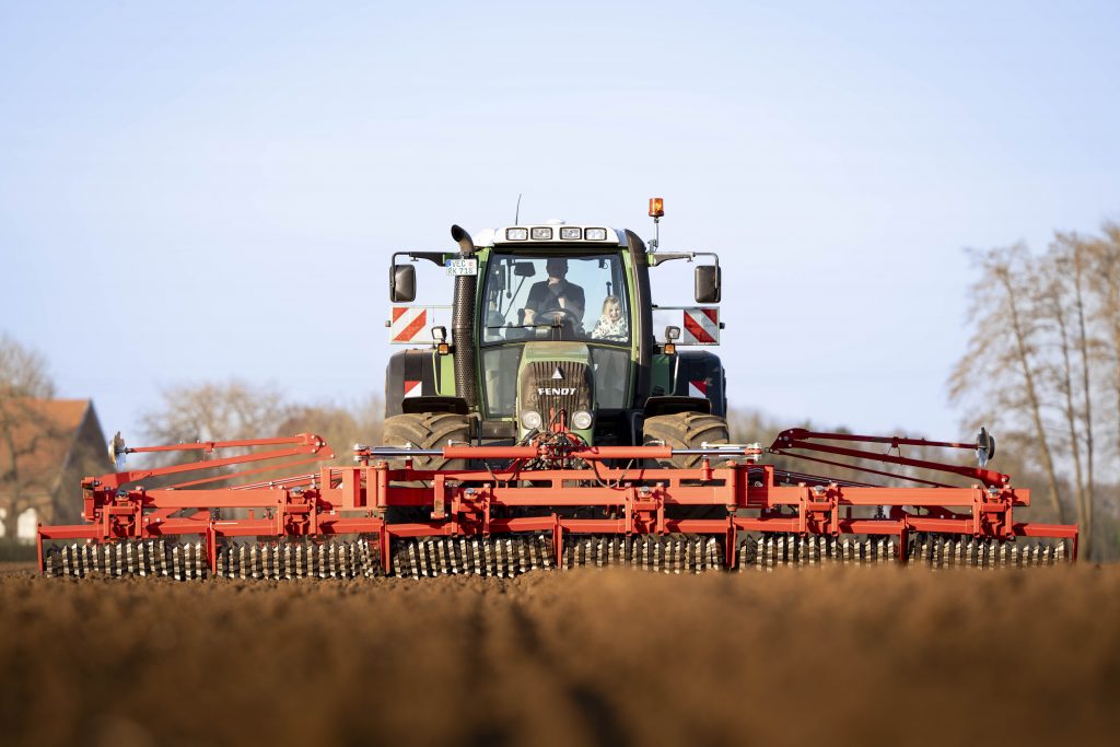 Grundsätzlich kommt in der Front eine 2,5 t schwere Güttlerwalze zum Einsatz. Zur Minimierung des Bodendrucks ist der Saatschlepper mit 900er Terrabereifung im Heck und 710er in der Front ausgestattet. GPS- Spurführung, Section Control und variable Fahrgassen sind selbstverständlich.